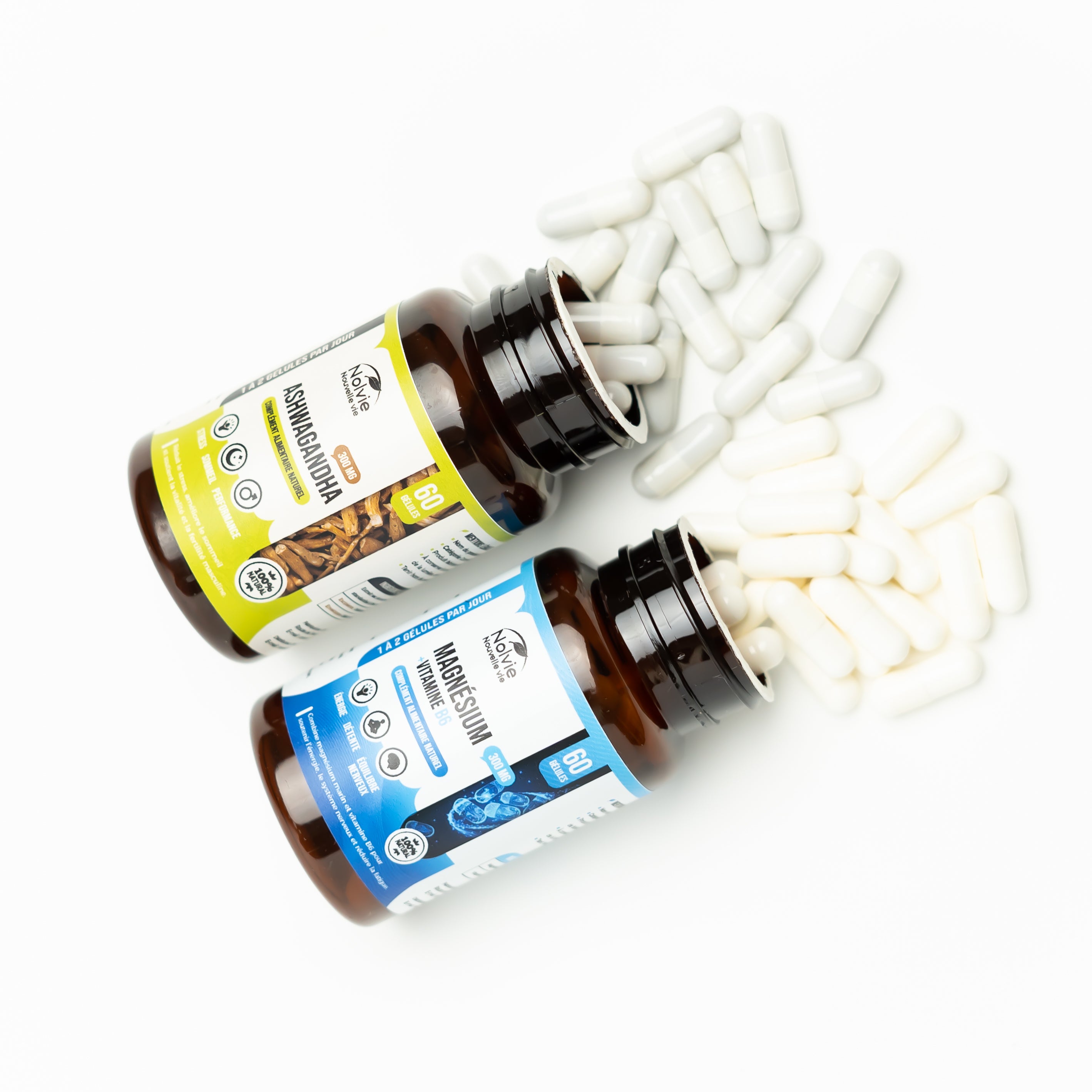 Pack anti-stress & relaxation • Apaise le système nerveux • Aide à réduire le stress et l’anxiété • Favorise un sommeil plus profond • Ashwagandha 300 mg + Magnésium marin 300 mg + Vitamine B6 • Énergie et équilibre nerveux • 60 gélules •